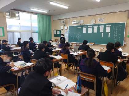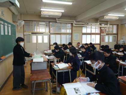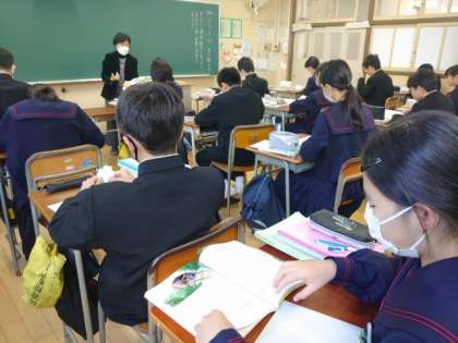 1年生国語科で芥川龍之介の小説「トロッコ」を鑑賞します。本作品は、主人公の心の変化を巧みな情景描写で表現しているそうです。先生から情景描写例がいくつか示されました。皆さん、主人公の心情を考えてみましょう。