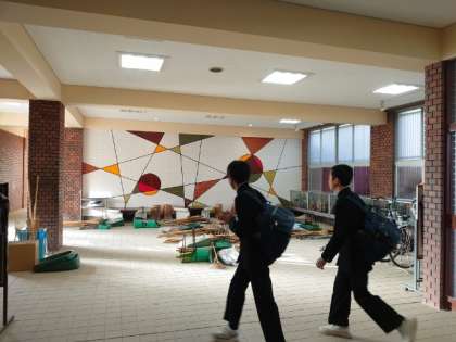 冷え込んだものの、爽やかな青空が広がる朝。今日の午後は校区内の公園清掃活動「ふれあい清掃」を行います。玄関ピロティにはお掃除道具がずらりと並んでいます。1、2年生の皆さん、頑張ってお掃除してくださいね。