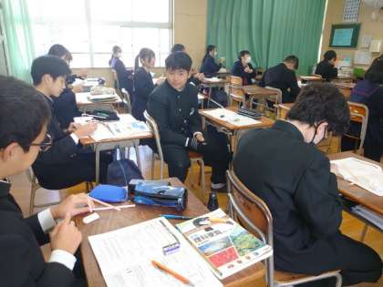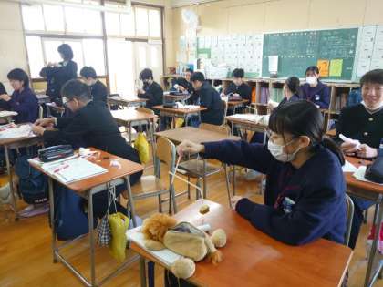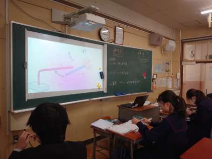 2年生理科の授業で「静電気」の実験が行われています。ストローをティッシュでこすり、別のストローに近づけます。直接触れていないのに、ストローがクルクルと回転し始めました。摩擦によってストローの表面にマイナスの電気が起こることが原因とのこと。手品みたいで不思議ですね。