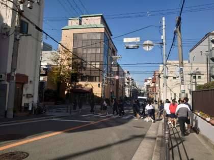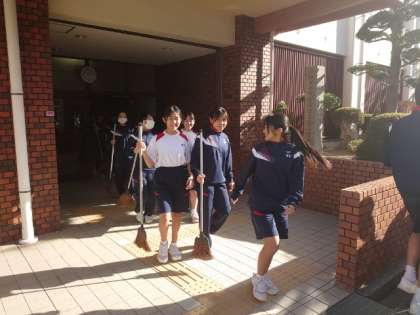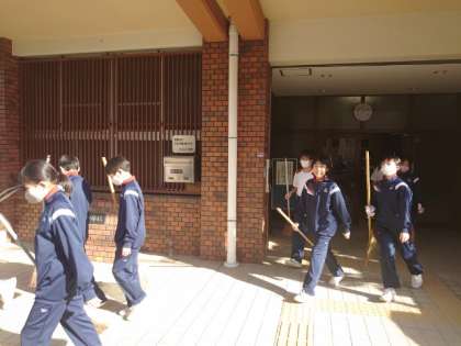 各公園をクラス単位でお掃除します。皆さん熊手やホウキ、火バサミなどのグッズを手に、担当する公園に向かいます。この時期は落ち葉がたくさんありそうです。落ち葉拾いを頑張ってくださいね。