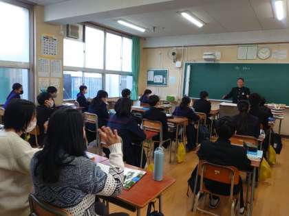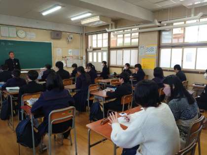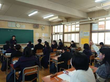 1年生英語の授業で「 My hero 」をテーマにスピーチにチャレンジします。C-NETのマージョリー先生が審査に参加し、スピーチ後にいろんな質問を行います。即興で英語の質問に答えるのは、ちょっと緊張しますね。