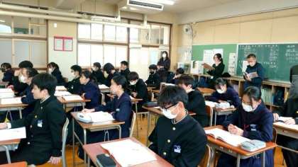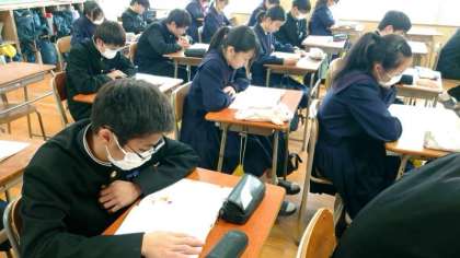 2年生の皆さんが道徳の授業を受けています。今日は、祖母の行動にいらだちを感じていた主人公が、祖母の孫や家族を想う愛情の暖かさに気付くお話。家族の一員として、互いに支えあっていることの大切さを考えましょう。