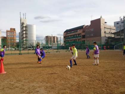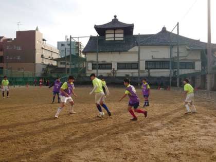 運動場ではサッカー部の皆さんが練習しています。部員を数グループに分けて試合形式で練習している模様。ボールコントロールが素早くて流石です。寒さも何のその、元気に運動場を駆け回ります。