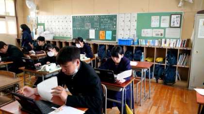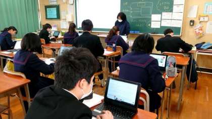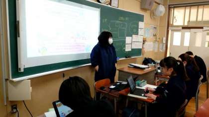 2年生家庭科の授業でタブレット端末を活用中。「食品関係企業の理念と消費」について調べ学習に取り組みます。関心のある企業のHPを調べて、どんな食品を消費者に提供し、社会に貢献しているかをまとめます。皆さんどんな会社を選んだのでしょう?