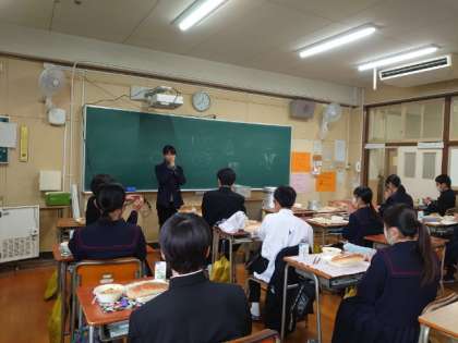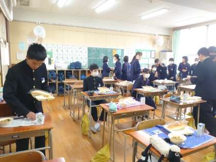 朝は晴れ間があったのですが、次第に雲に覆われてきました。今日の給食は「カレーうどん」。お出汁がほのかに香る温かいおうどんは、寒い日にぴったりです。2年生の教室では、今から給食をいただくところ。皆さん、温まってくださいね。