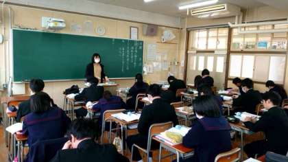 3年生国語の授業で魯迅の小説「故郷」を鑑賞します。30年ぶりに故郷を訪れた主人公の「私」。幼少当時に出会った友人と再会するものの、立場や関係の違いに「私」の心が揺らぎます。今日は2人の関係の変化を考えます。互いに意見を出し合って考えを深めましょう。