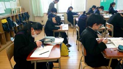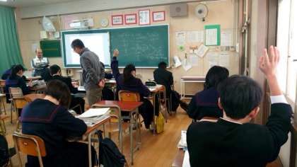 1年生数学の授業で「扇形」の作図を学習しています。先生から「半径3cm、中心角60度の扇形の作図」の問題が出されました。できた人は手を挙げて、先生方に見ていただきます。皆さん、上手くできましたか?