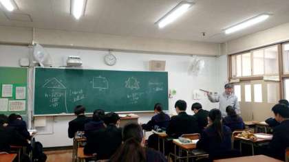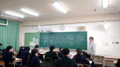3年生数学科でも図形の問題に取り組んでいます。1年生より幾分レベルアップし、高校入試で出題されやすい問題を中心に解いていきます。苦手な人は、今のうちに解法をしっかりとマスターしてくださいね。