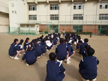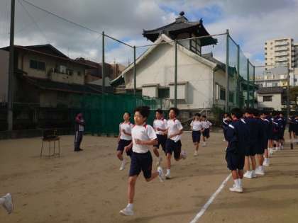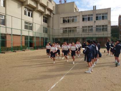 2年生体育の授業で取り組んでいる持久走。今日も1500mのタイムを計測します。回を重ねる度に、持久力や心肺機能が高まっている模様。今日は風も無く、走るには絶好のコンディション。皆さん、自己ベスト更新をめざしましょう。