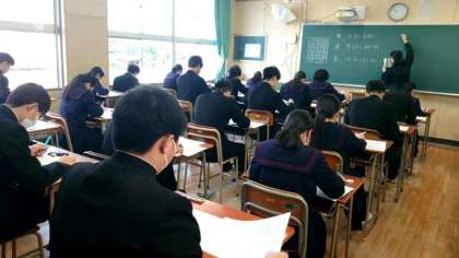 学年末テスト2時間目、英語の問題が配られました。発音のアクセントの問題や長文読解、リスニングなど幅広いジャンルから出題されています。時間配分を考えて、デキる問題から解き進めましょう。