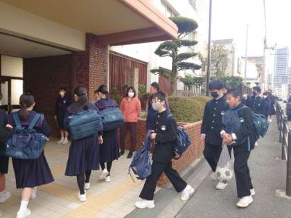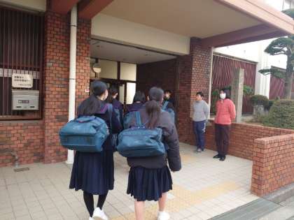 吹く風の冷たさに、寒さの強まりを感じる朝。明日は3年生が私立高校の出願に出かけます。学年末テスト終了後、昼食をいただき、各高校に向かいます。明日は今日以上に寒くなりそう。暖かい服装など、防寒対策をお願いします。出願予定の人は給食がありませんので、お弁当を用意してくださいね。