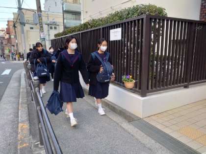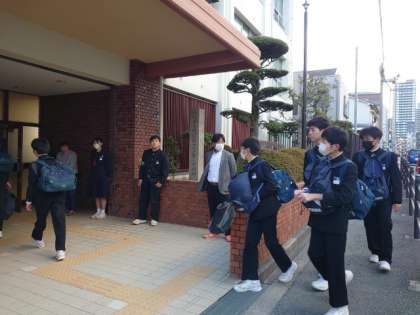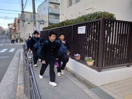 すっぽりと冷気に包まれた朝。皆さん防寒着を身に付けて登校してきました。今日の放課後は小学生の部活動体験「ベアーズ」を行います。参加する小学生の皆さんは、暖かい服装で中学校に来てくださいね。