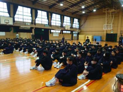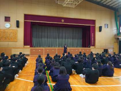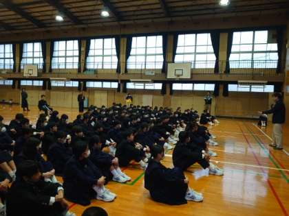 木曜の朝は2年生が集会を行います。職場体験まであと1週間になりました。今朝の集会も職場体験に向けたお話がありました。先週、事前訪問に行った際に、訪問時間や持ち物、体験内容を教わったと思います。準備を万全に、実り多い体験になると良いですね。