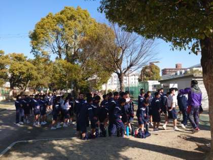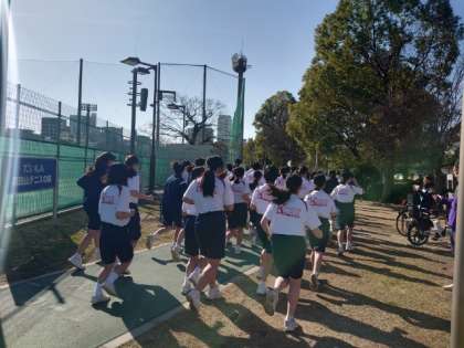 1、2組に続いて、2年生3〜5組の皆さんが公園に到着しました。公園の周回コース1500mのタイムレースです。これまで授業で培ってきた持久力を発揮して、記録更新をめざしましょう。