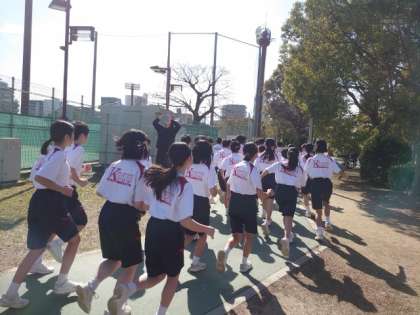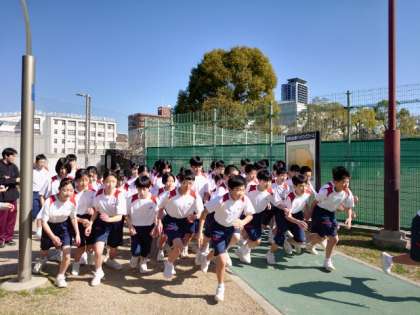 1年生後半の部は、1、2組が走ります。公園の周回路が約500m。学校の運動場より直線距離が長いので、スピードが出せそうです。自己ベストをめざして、駆け抜けましょう。
