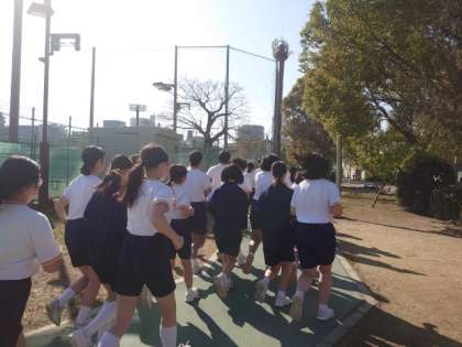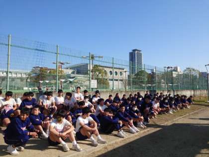 真田山公園の周回路1500mを走る「真田山公園杯」も今日が最終日。最後は3年生が記録更新をめざします。まずは3年1、2組から。風も無く、絶好のランニング日和です。皆さん頑張ってくださいね。