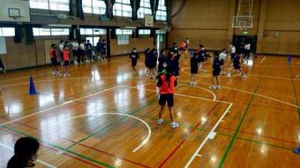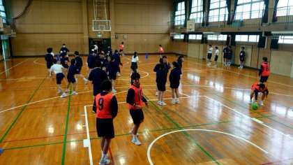体育館で3年生の皆さんがスポーツを楽しんでいます。自分たちで新しいスポーツ競技を考えて、早速試しているところ。ドッジボールと鬼ごっこをミックスした競技だそうです。あちこちで歓声が上がり、盛り上がっていますね。