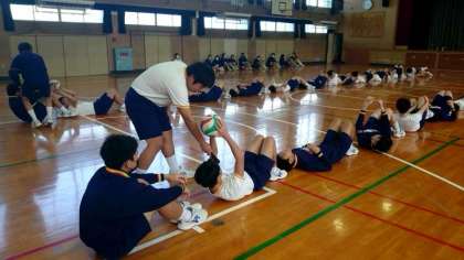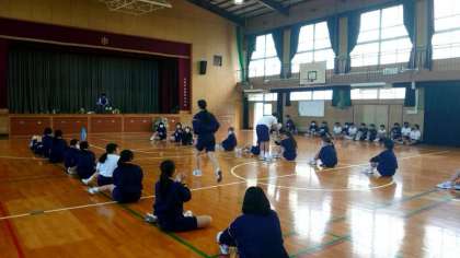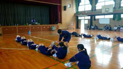 3年生体育の授業で室内レクリエーションに取り組みます。生徒の皆さんが発案したゲームの数々をみんなで楽しみます。現在、クラス対抗で戦っているところ。日頃の受験疲れを少しでも癒してくださいね。