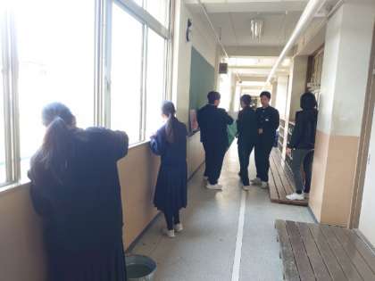今日は公立高校一般選抜の入試日。すでに進学先が決まった3年生が、教室や廊下の清掃に取り組んでいます。卒業まであと2日。仲間と過ごした学び舎を、すみずみまで美しくお掃除しましょう。