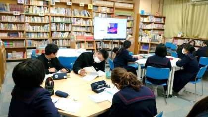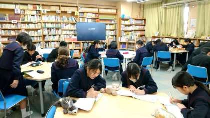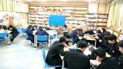 2年生の皆さんが図書室にやってきました。英語科で取り組む「洋画を観る会」の始まりです。比較的英語が聞き取りやすい映画をみんなで視聴します。残念ながら今日は機器のトラブルで上映できず。皆さん、次回を楽しみにしてくださいね。