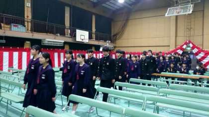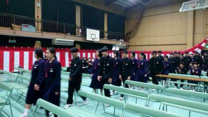 本番同様、卒業生の皆さんがクラス毎に入場してきました。在校生の拍手と吹奏楽部の演奏が式の雰囲気を盛り上げます。