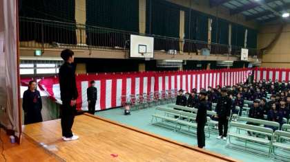 中学校の校歌を72期生全員で歌うのも今日・明日の2回になりましたね。校歌斉唱に続いて、卒業証書の授与の練習が始まりました。