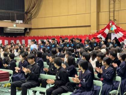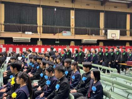保護者やPTAの皆様、在校生の皆さんからの拍手の中、卒業生が入場してきます。ちょっぴりはにかんだ笑顔がステキです。