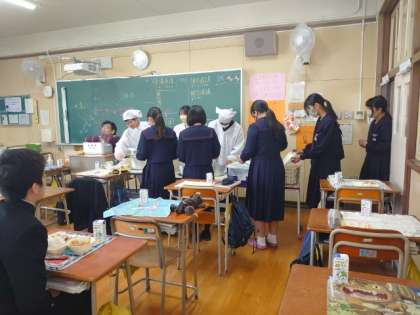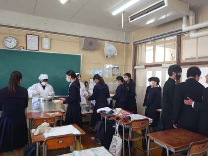 お昼休みのチャイムが鳴り、2年生の教室で給食の準備が始まりました。今日は「豚肉の生姜焼き・サツマイモのお味噌汁・大根の柚子香和え」の和風メニュー。月曜日は給食が無いので、このクラスで給食をいただくのは、明日と来週の火・木曜日の3回になりました。みんなで仲良くいただいてくださいね。