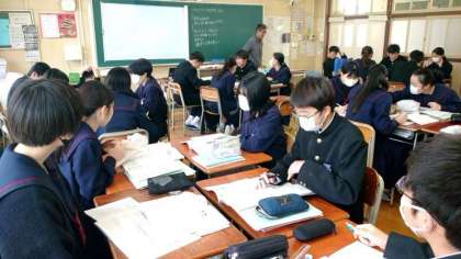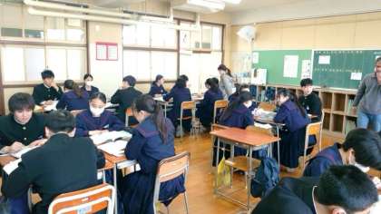 2年生数学の授業で「データの活用」について学習中。今日は東京の気温のデータ (過去分) を分析し、どのように気候が変化しているか、グループで意見をまとめます。データの読み取り方でさまざまな考察ができそう。みんなでいろんな意見を交わしましょう。