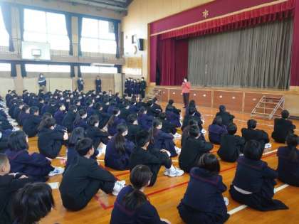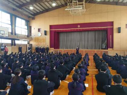 式では、保健の先生から春休みの健康管理についてお話がありました。生活リズムを崩さないよう、気をつけましょう。また生徒会の皆さんから能登半島地震の支援募金へのお礼がありました。ご協力、ありがとうございました。