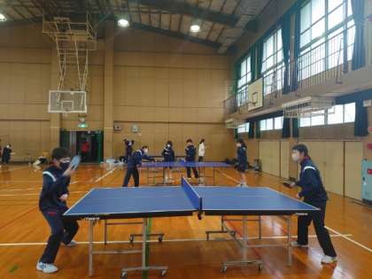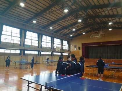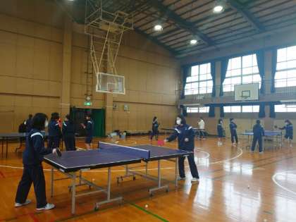 体育館で卓球部の皆さんが練習に励んでいます。足の動かし方をしっかりと意識することが大切だそうです。フットワークを身体に覚えさせ、スキルアップをめざしましょう。