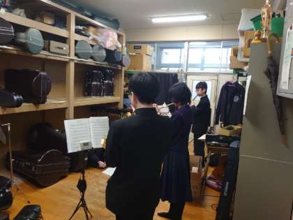 吹奏楽部の皆さんが校内のあちこちに分かれてパート練習を行っています。来週水曜日の入学式では、ステキな音楽で新入生を迎えてくださいます。当日の演奏を楽しみにしています!