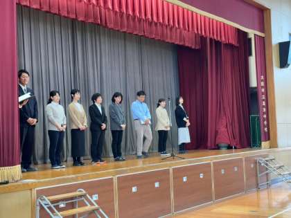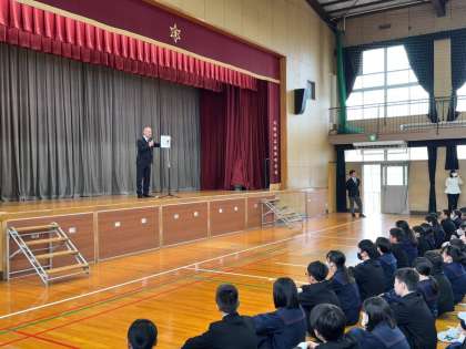 始業式の様子です。校長先生から、生徒会憲章をふまえながら、生徒の皆さんとともに考える1年にしたいとお話しがありました。