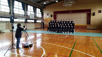 学級写真を撮りました。あいにくのお天気でグラウンドではなく、体育館での撮影となりました。