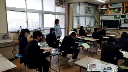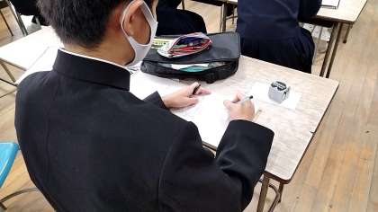 クロッキーの授業です。抽選で選ばれた生徒をモデルにして、スケッチブックに描いている様子です。
