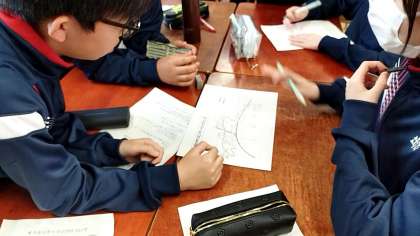 洞川集落を散策するオリエンテーリングの計画を、班ごとに練っているようです。