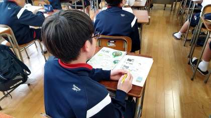技術と社会の単元です。過去の公害問題や地球温暖化など今日的な課題もふまえながら、技術の進歩と環境保全の調和について学びました!