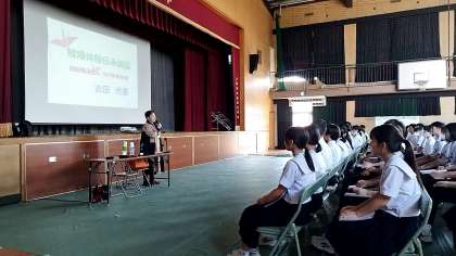 広島訪問の事前学習として、被団協から古田光恵さんを講師にお迎えし、被爆の惨状について語っていただきました。