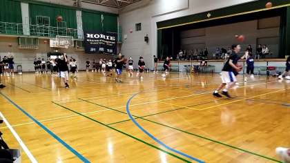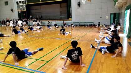 堀江中学校体育館において、同中バスケットボール部との合同練習会が開催されました。この後、練習試合に臨みます。