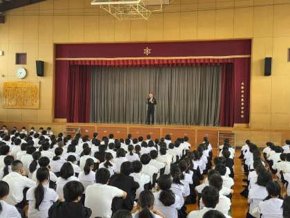 2年生校外学習(大阪城戦跡フィールドワーク)、3年生修学旅行(広島・岡山・四国方面)を控えていることをふまえ、校長より大阪大空襲に関する講話がありました。