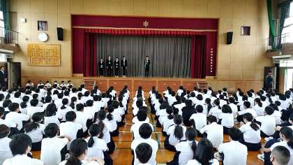 また、教育実習が本日より3週間実施されます。5名の実習生が自己紹介を行いました。