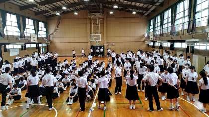 揃ったクラスから、学級委員長の号令で整列し、静かに待ちます。