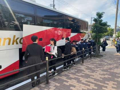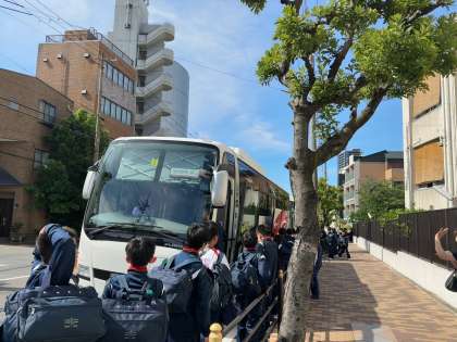 バスに乗車しました、奈良県天川村をめざします。お見送りに来てくださった保護者の皆さま、ありがとうございます。
