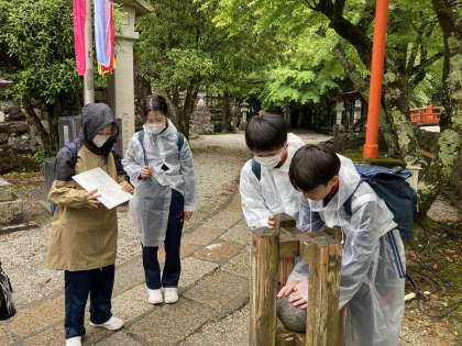 洞川の街の地図を手に、班単位で目的地をめざします。