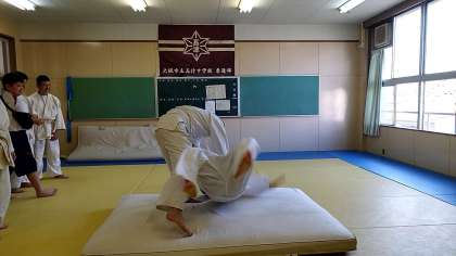 投げ技の練習です。マット越しに畳を打つ音が響き渡っています。
