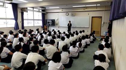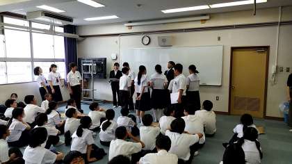 教育実習期間は本日までです。1年生を担当した実習生お二人に、各クラスから色紙が贈呈されました。