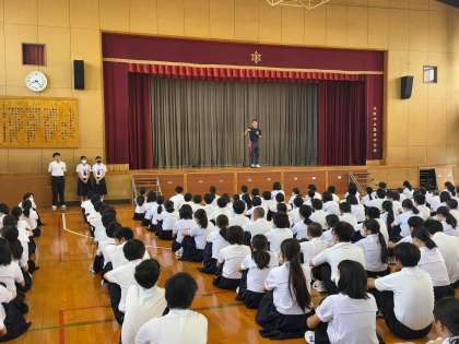 3年生が修学旅行の間、2年生は最高学年としての自覚をもって、1年生は今すべきことを考えながら、授業や部活動に取り組んでほしいと話がありました。