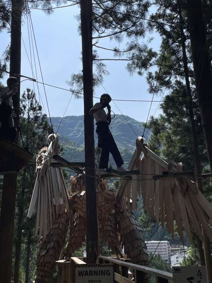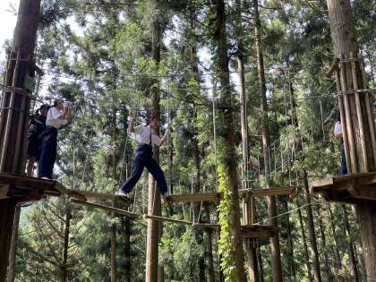 フォレストアドベンチャー班です。森のなかを空中散歩です。
