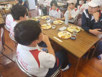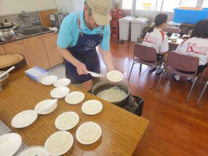 バウムクーヘン班です。羽釜ごはんとともに、美味しくいただきました。