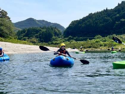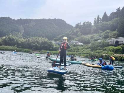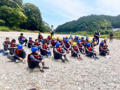 カヌー&サップ班です。プログラムを満喫したのち、河原にあがり楽しかった半日を振り返りました。